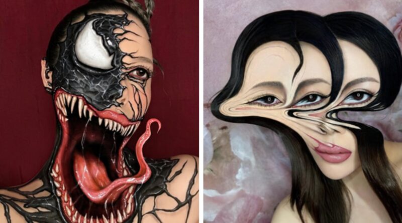 Os olhos multiplicam-se subitamente, os rostos contorcem-se e mudam, e a pele parece abrir-se, derreter-se ou desaparecer por completo. E a parte mais selvagem? Cada efeito é criado usando apenas maquiagem e muita paciência. O resultado é o tipo de arte que faz você parar e pensar: “Espere, estou realmente vendo isso certo?”