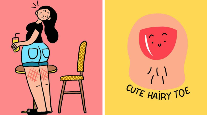 Para contribuir com esse movimento, a artista francesa Cécile Dormeau começou a desenhar ilustrações assumidamente reais. Suas obras de arte retratam destemidamente as realidades que as mulheres enfrentam, mostrando-as orgulhosamente abraçando seu eu natural. Desde exibir pernas peludas até abraçar estrias, as ilustrações de Dormeau retratam mulheres celebrando seus corpos em toda a sua glória sem filtros.