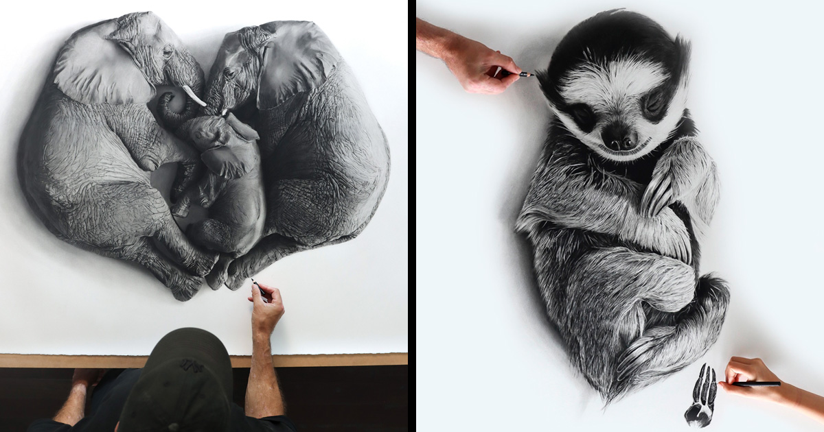 🤯 INCRÍVEL: 20 Stunning Photorealistic Charcoal Animal Portraits Created By Father-Daughter Artist Duo 😲