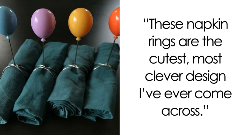#6 Pronto para flutuar em jantares? Esses Anéis de guardanapo de balão Adicionará um toque de capricho a qualquer configuração de mesa, porque, honestamente, ser adulto já é difícil o suficiente – por que não se divertir com sua roupa de cama?