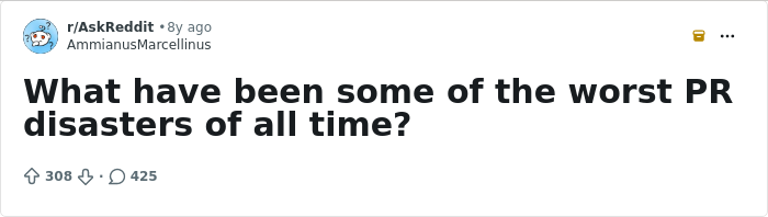 Redditores em diferentes tópicos, pediu às pessoas que compartilhassem o que elas acham que é o piores desastres de relações públicas de todos os tempos, e houve não faltam respostas. Reunimos alguns dos mais interessantes abaixo, então role para baixo para lê-los e, se você acha que algum outro caso merece menção, deixe-o nos comentários.