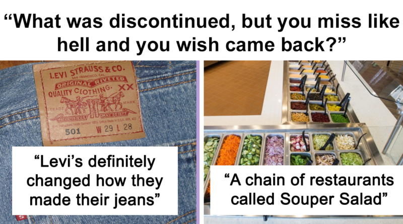 29 pessoas revelam coisas descontinuadas que gostariam que voltassem Costumávamos ter uma rede de restaurantes chamada Souper Salad. Era apenas um bufê de saladas com três opções de sopa, mas era barato e tudo o que você podia comer. Naquela época eu considerava isso um dado adquirido e agora sinto muita falta. 🥲