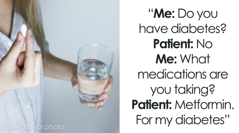 “Do you have any medical problems?” “No” “So no diabetes?” “No diabetes” “What medications are you taking?” “Metformin. For my diabetes.” I facepalm every time