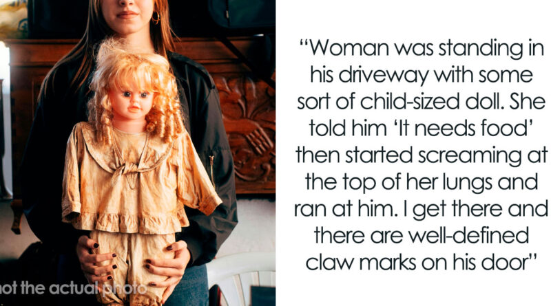So my buddy and I approached and tried talking to her and she just kept whispering to the doll, couldn’t understand what the hell she was saying so we decided to drag her out of there. The second we put hands on this chick she went berserk. Punching, kicking, slapping, all kinds of stuff. So we’re fighting with her trying to get her on the ground and she’s not going down, this chick was strong as hell. Well in the fight she somehow got away from us and was sitting in a crouched position with her head tilted to the side and making the creepiest growl/snarling sound I’ve ever heard. Then she screams at the top of her lungs and charged at us. So, my buddy straight-jabbed her in the face and knocked her clean out. We cuffed her and hauled her off to the hospital where she tested positive for PCP and various opiates. She was charged with battery of a peace officer, resisting arrest, and trespassing.