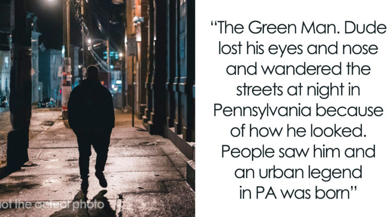 Dude lost his eyes and nose and wandered the streets at night in Pennsylvania because he couldn’t go outside in the daytime because of how he looked. People saw him and an urban legend in PA was born.