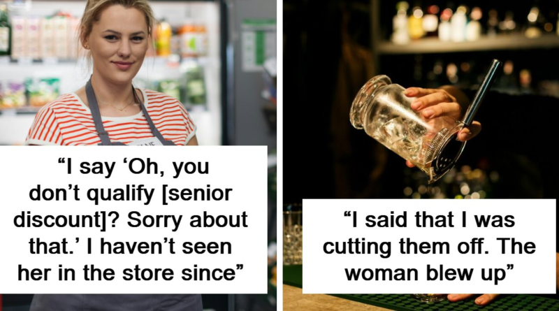 37 Times People Had The Opportunity To Make A Jerk’s Day Worse I’m a manager at a grocery store, so I get awesomely rude customers on a daily. Every Wednesday is senior discount day. You have to be 55-60 to qualify for the discount. Needless to say, Wednesdays are tense. Lots of seniors, and lots of other people who don’t want to deal with the seniors. I don’t generally mind the old folks. Most of them are pretty cool and have some interesting stories and cute jokes.