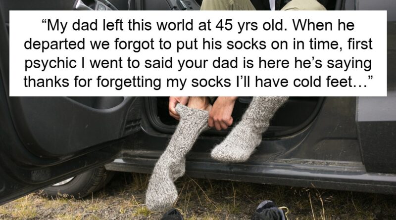 41 Psychic Readings That Turned Out Surprisingly Disturbing My dad passed away at 45 yrs old. When he died we forgot to put his socks on in time, first psychic I went to said your dad is here he’s saying thanks for forgetting my socks I’ll have cold feet…