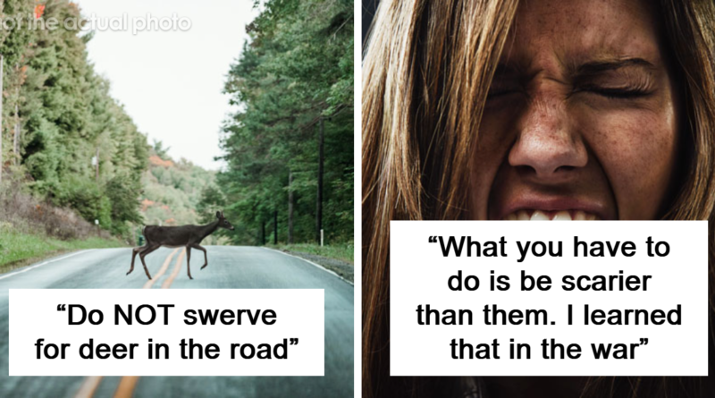 Not really a survival tip but “Do NOT swerve for deer in the road”.
