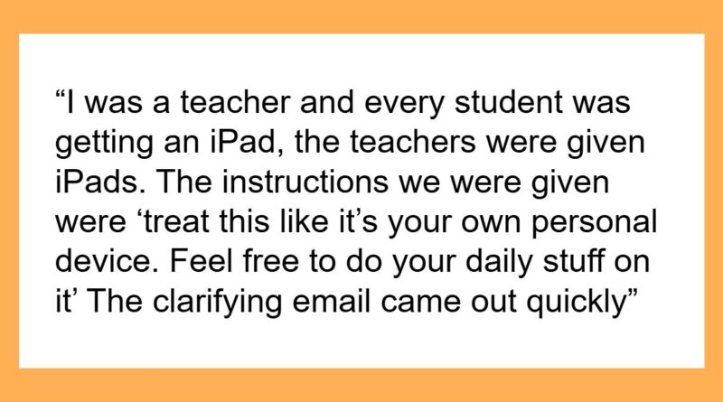 I was a teacher and, the year before every student at the school was getting an iPad, all of the teachers were given iPads so we would be familiar enough with them to be helpful and have plans for how to use them. The instructions we were given were “treat this like it’s your own personal device. Feel free to do your daily, non-work stuff on it, because the goal is that you become comfortable using the tech.”