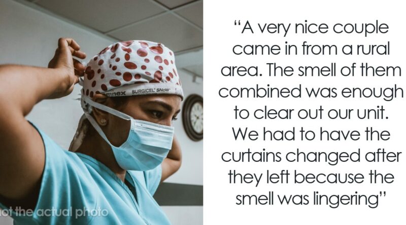 45 Gross Things Medical Workers Have Seen In Patients A very nice couple came in from a rural area for the wife to have a short elective procedure. The smell of them combined was enough to clear out our unit. Everyone was throwing on masks. They were from the middle of nowhere where I think they must not have had (or at least regularly used) running water. They smelled like a giant, moist, yeasty, bacteria-infested groin. We had to have the curtains changed after they left because the smell was lingering.