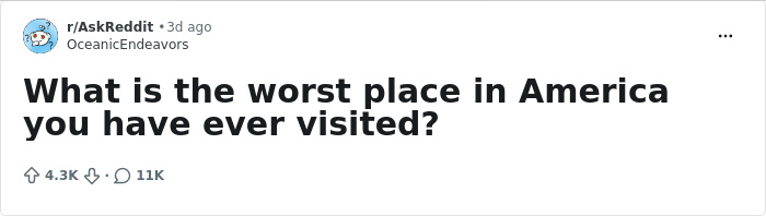 However, when you’re talking about an area that spans over 3.8 million square miles (9.8 million square km), naturally, some of its corners will look worse than others. Curious about what let people down, Reddit user OceanicEndeavors asked the internet to share the place in America they do not want to go back to. Here are some of the most popular answers, from both tourists and locals.