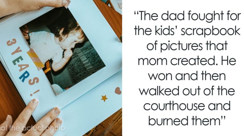 I remember reading one of these where the dad fought tooth and nail for the kids scrapbook of pictures, etc that mom created. He won them and then walked out of the courthouse and burned them right on the steps/outside of the courthouse.