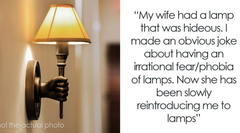 Wall sconce shaped like a hand holding a torch-style lamp, symbolizing harmless secrets in relationships decor concept. My wife had a lamp that was hideous. I didn’t have any lamps at my place. When we got married she wanted to bring it to our shared residence. I made an obvious joke about having an irrational fear/phobia of lamps. She took it seriously but I didn’t correct her. We have purchased a home and need a few lamps to brighten the place up. Now she has been slowly reintroducing me to lamps and I have progressed “significantly”.