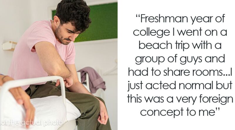 Freshman year of college I went on a beach trip with a group of guys and had to share rooms…I just acted normal but this was a very foreign concept to me.