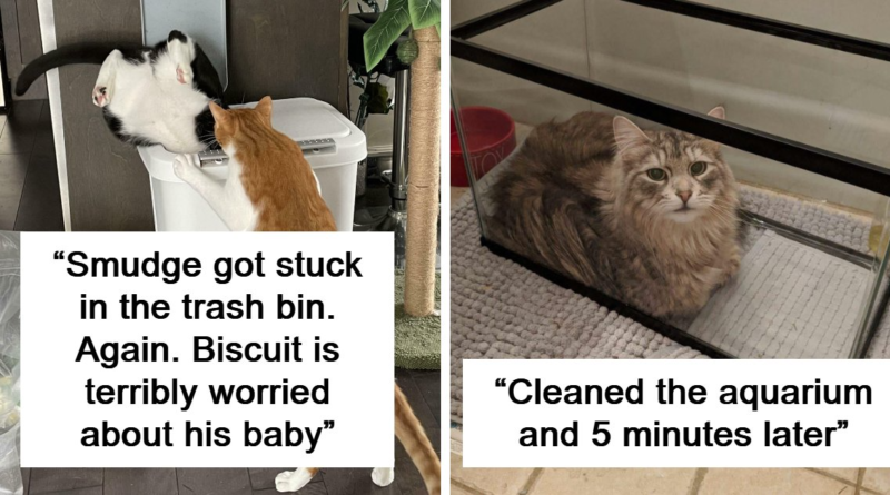 Qualquer pessoa que já tenha passado algum tempo perto de gatos sabe que essas criaturas nobres e orgulhosas farão o que quiserem, quando quiserem. E eles realmente gostam de ficar confortáveis em alguns dos lugares mais aleatórios e bizarros de todos os tempos. Em outras palavras, se couberem em algum lugar, ficarão ali sentados. E não há nada que você possa fazer a não ser pegar sua câmera e tirar uma foto.
