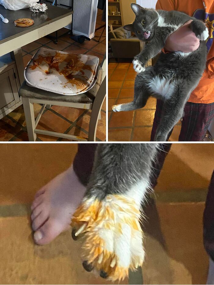 Nunca imaginei que um gatinho de 2 a 3 libras pudesse trazer um pote pesando quase cinco vezes o seu tamanho! Definitivamente mais cuidado agora.