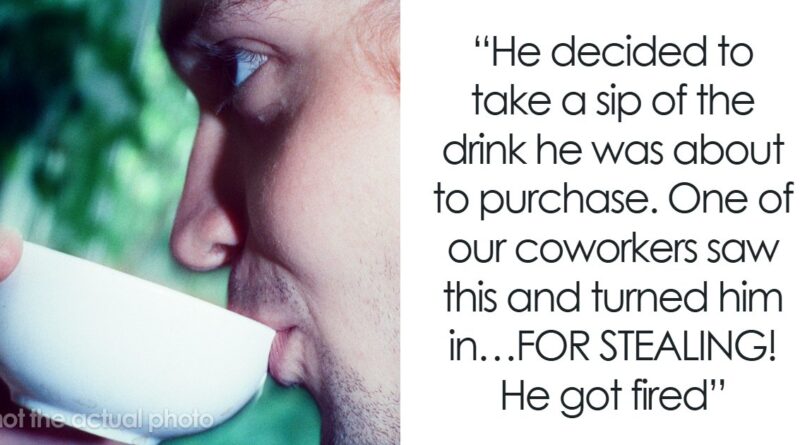 Then a couple weeks later, I see him at a furniture store. He tells me what happened, and told me I could tell the others as well. He had been waiting in the queue to pay for his food on his break. He was getting thirsty, and there were several people ahead of him. So he decided to take a sip of the drink he was about to purchase. Well, one of our other coworkers saw this and turned him in…FOR STEALING! He didn’t steal; he was going to pay. But did he have proof he was going to actually pay? He got fired. It pissed all of us off, and we came to dislike the one who turned him in.