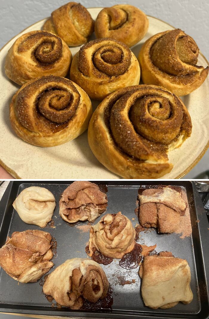 # 3 Rolinhos de canela da minha esposa versus meus rolinhos de canela [homemade]