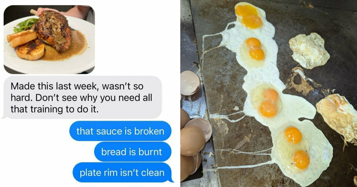 Mas trabalhar em restaurantes traz consigo suas próprias alegrias e desafios. Há a alta taxa de rotatividade, clientes exigentes, cozinheiros incompetentes e derramamentos acidentais que fazem você querer rastejar dentro da crosta terrestre e nunca mais voltar. O pessoal da “Kitchen Confidential” já viu de tudo, e se você já chorou em um freezer, essas postagens também podem ser relacionadas a você.