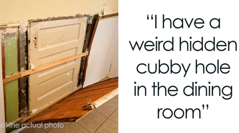 I have a weird hidden cubby hole in the dining room. The room has solid oak wall paneling. Well, one of the panels pops off the wall and there is a secret space behind it. My husband and I can fit in the space at the same time. I have no idea why it’s there or what others have used it for in the past.