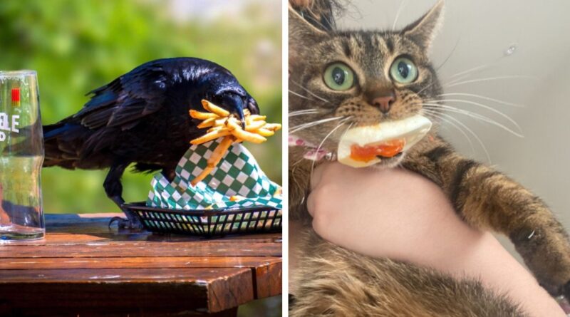 A lot of human food isn’t meant for animals, but that won’t stop some hungry critters from trying to sneak a taste. Some pets and wild animals are so blatant with their culinary thievery that people couldn’t help but snap a pic of their funny and adorable antics.