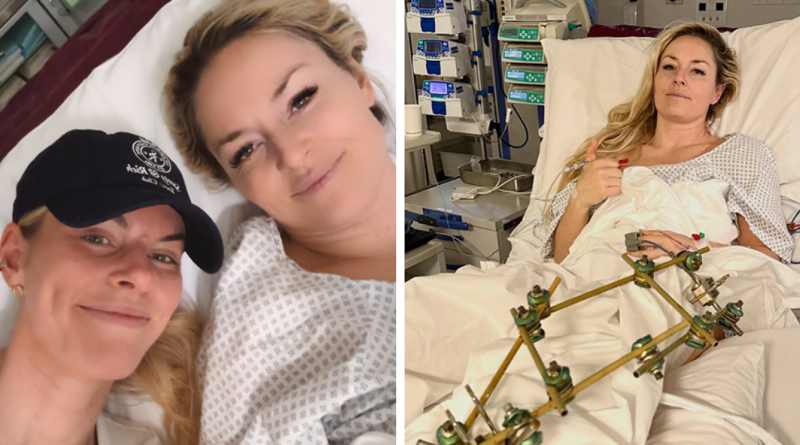 Como resultado do acidente, a esquiadora quebrou a perna e desde então passou por quatro cirurgias para reparar uma fratura complexa na tíbia.