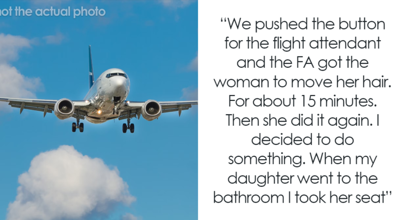 Um homem terminou se viu em uma situação um pouco complicada quando, em um vôo, uma mulher na frente dele ficava jogando o cabelo por cima do assento e bem na frente da tela que sua filha usava para assistir a um filme. Quando ele trocou de lugar com a filha, a mulher perguntou o porquê e ele fez uma piada possivelmente mal planejada sobre a aparência do cabelo dela.