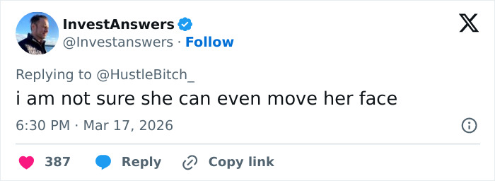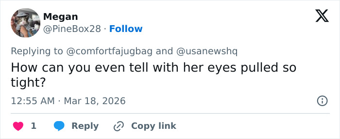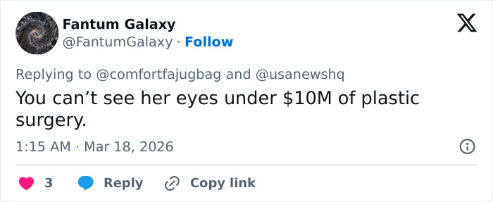“É muito difícil dizer qual é a expressão dela com toda aquela cirurgia”, disse um internauta sobre o fiasco do divórcio