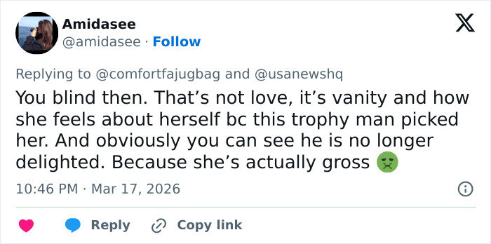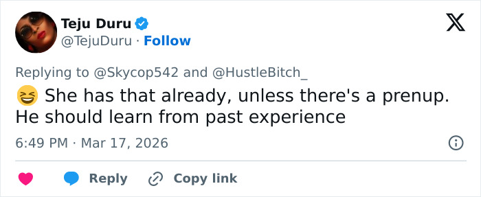 Os usuários da plataforma concordaram com a teoria, pois um escreveu na seção de comentários: “Espero que ele tenha um acordo pré-nupcial”, e outro repetiu: “Espero que ele esteja calculando em sua cabeça quanto pagará a ela quando ela for embora”.