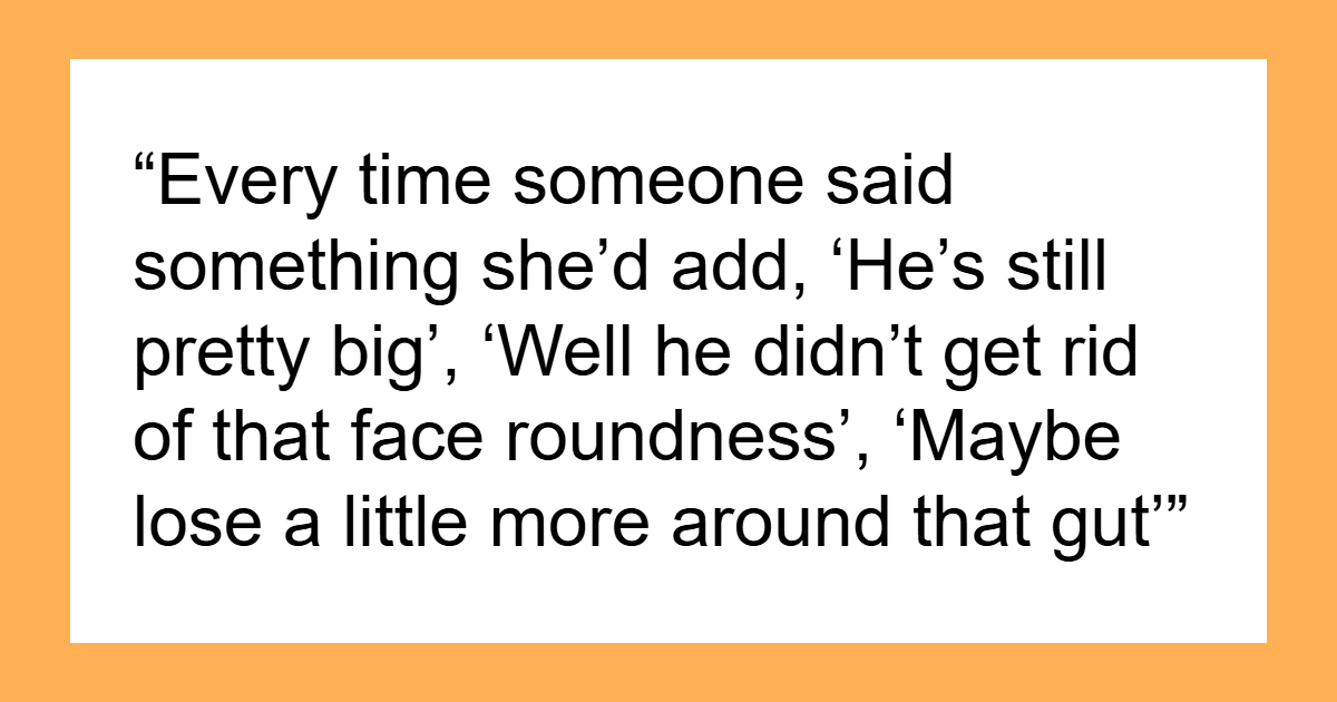 Esse Redator ganhou peso durante a adolescência e início dos vinte anos, após desenvolver um hábito alimentar estressante. Durante todo esse tempo, sua meia-irmã nunca perdeu a chance de vergonha do corpo ele. Anos depois, ele perdeu 50 quilos e ficou em forma, enquanto ela mesma ganhou peso. Mesmo assim, os comentários cruéis ainda não pararam.