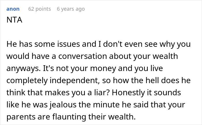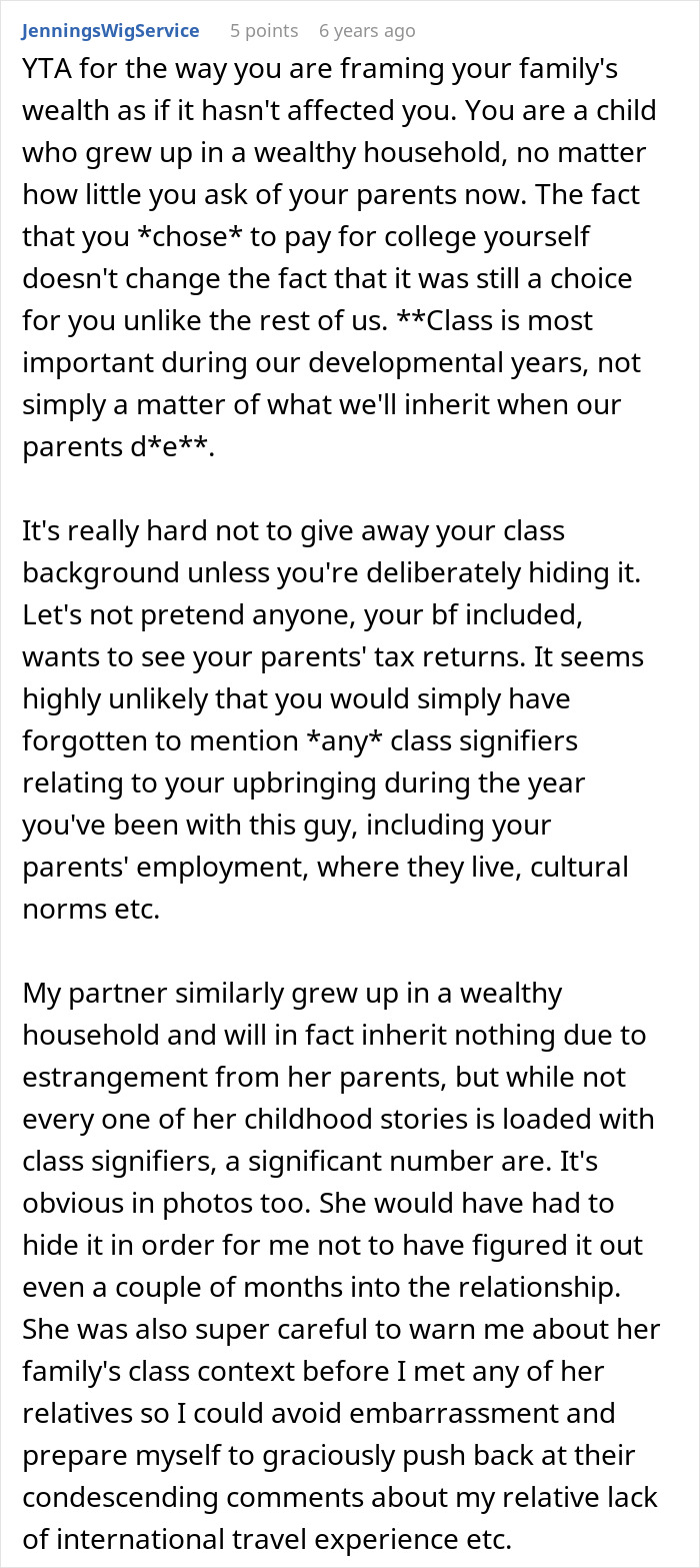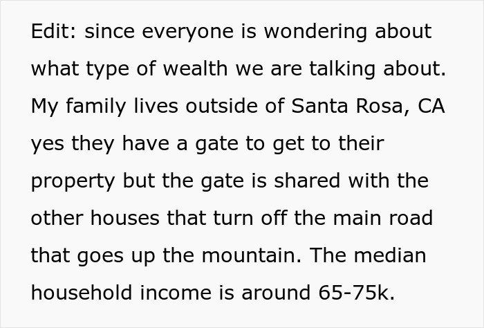 Mais tarde, a mulher se abriu um pouco mais sobre o quão rica sua família realmente era