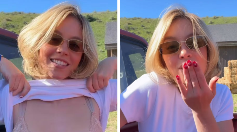 Sidney Sweeney se tornou viral depois de levantar inesperadamente sua camiseta e piscando a câmera em um vídeo de bastidores promovendo sua nova marca de lingerie, Syrn.