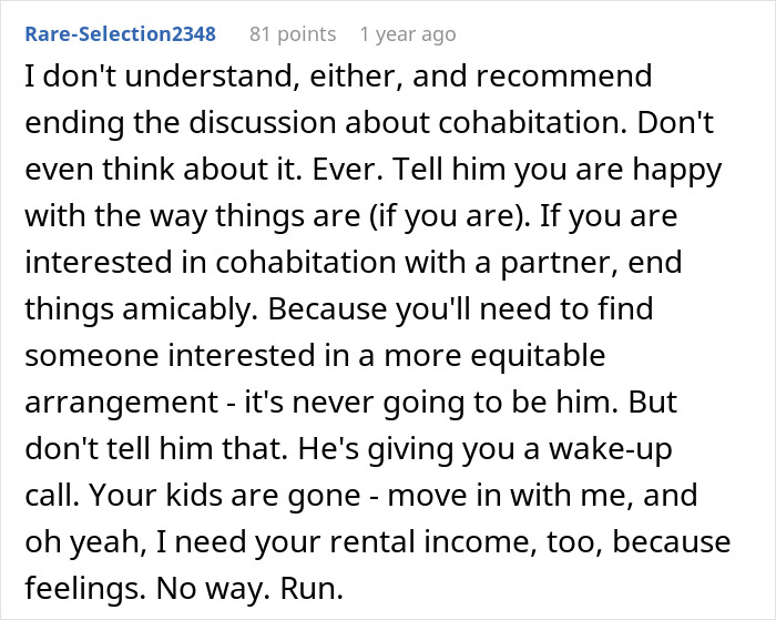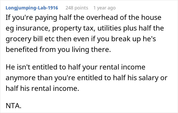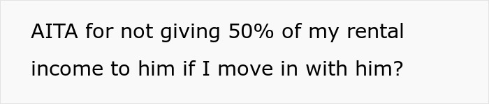 Esta mulher descobriu que seu namorado espera que ela compartilhar metade de sua renda de sua propriedade alugada. Ela achou que não era justo, pois é dela e eles iriam morar juntos em uma casa que ele já havia quitado. Então, ela perguntou a internet por opiniões imparciais. Ela estava errada ao pensar que a exigência dele de cobrir metade das contas e compartilhar sua renda de aluguel não era razoável?