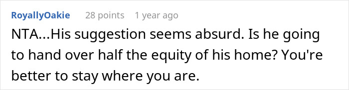 A maioria dos comentaristas ficou do lado da mulher, instando-a a adiar a mudança
