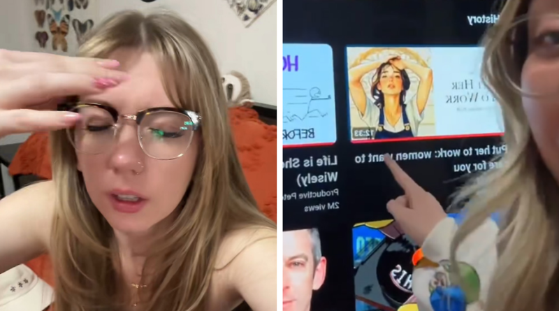 Shaely ficou na frente da história do YouTube de seu namorado exibida em uma tela gigante de computador. Segundo ela, seus outros relógios recentes incluíam “Coloque-a para trabalhar” e “As mulheres querem cuidar de você”.