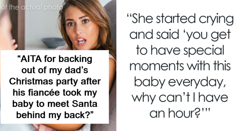 Step-grandma sneaks baby to Santa during visit, causing loss of babysitting privileges and family disputes over photos.