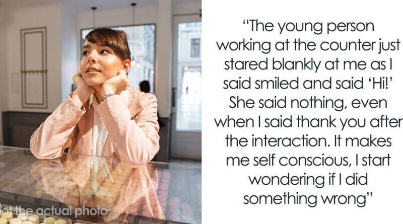 This literally happened to me again yesterday. Went to a chocolate shop to pick up a birthday gift. The young person working at the counter just stared blankly at me as I said smiled and said “Hi!” She said nothing, even when I said thank you after the interaction. It makes me self conscious, I start wondering if I did something wrong.