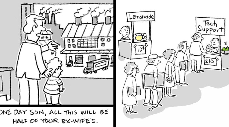 Alguns de vocês devem se lembrar de Joe Lennon do nosso post anterior, mas para aqueles que o descobrem pela primeira vez, Joe é conhecido por identificar os momentos estranhos, estranhos e totalmente engraçados da vida cotidiana. Seus desenhos animados de painel único usam apenas algumas falas e reviravoltas inteligentes para transformar situações comuns em pequenas explosões de humor absurdo, mas muitas vezes identificável.