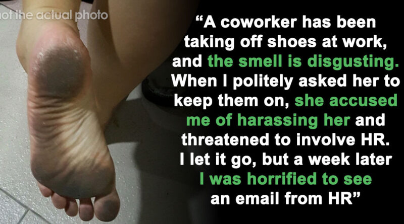 The next day, I walked into work thinking the issue had blown over—but I was wrong. She went straight to our supervisor and reported me. Before I knew it, I was being called out in front of the entire office. My supervisor reprimanded me for being disrespectful and implied that I had overstepped. I felt completely humiliated. I let it go, but a week later I was horrified to see an email from HR—someone posted this message on our social media anonymously — “Ban barefoot behavior in the office, it stinks.”