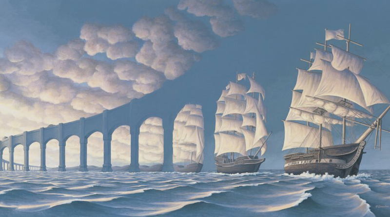 Rob Gonsalves foi um pintor canadense de realismo mágico conhecido por suas belas e alucinantes ilusões de ótica. A maioria de suas pinturas tem uma fronteira pouco clara entre as múltiplas histórias que contam, o que força o espectador a alternar entre elas.