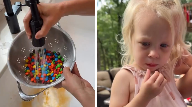 A short video showing a mom trying to “clean” M&M’s before giving them to her child has gone viral, but not for the reason she likely expected. In the clip, she can be seen washing the candy to remove its outer coating before serving it, seemingly trying to avoid artificial dyes.