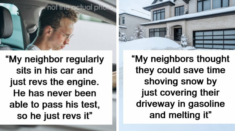 "No Curtains Or Anything": 51 Wild Things People Saw Their Neighbors Do I live in Michigan. Most winters we get a lot of snow. The house next door has never had the brightest people living in it. Woke up one day to the fire department parked in the street. Apparently my neighbors thought they could save time shoving snow by just covering their driveway in gasoline and melting it. They would also burn trash all the time.