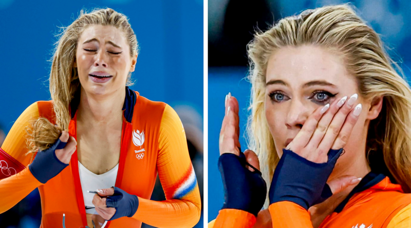 Depois de ganhar o ouro na competição de patinação de velocidade de 1.000m em 9 de fevereiro, Jutta Leerdam abriu o zíper em lágrimas seu terno para revelar sua roupa íntima Nike.