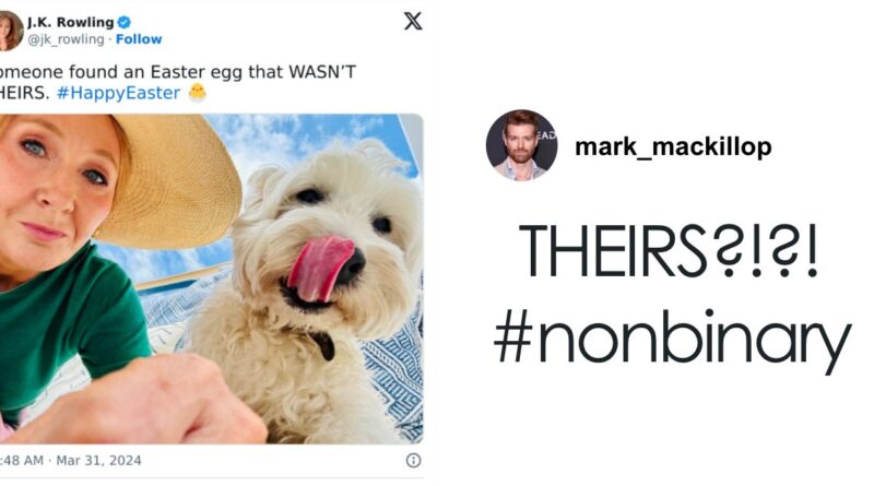 - J.K. Rowling was trolled for using “theirs” in an Easter post to refer to her dog, sparking conversation about her views on gender.