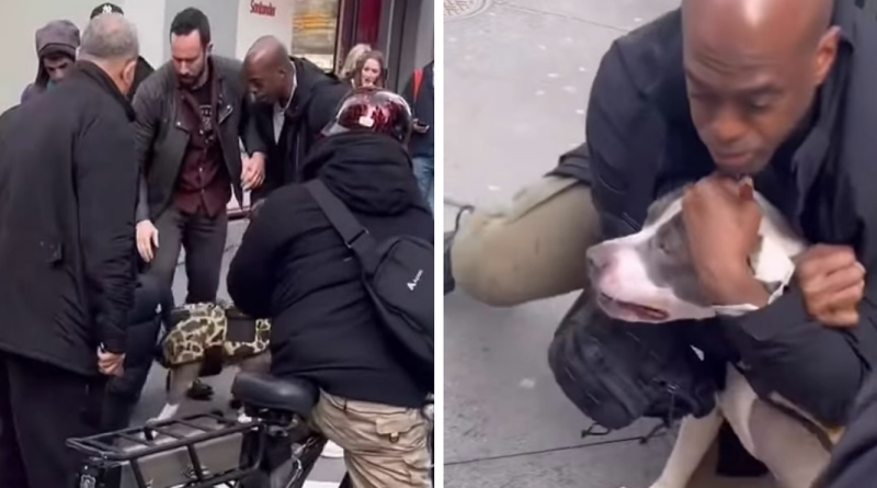 A man viewers believe is the dog’s owner, rather than assisting, yanks on the dog’s leash during the incident and then calmly walks off with the animal, waiting at a nearby bus stop as onlookers call the New York Police Department.