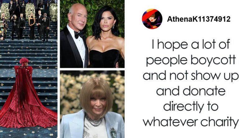 Supostamente, o evento está enfrentando um boicote devido à posição atual de Anna Wintour e ao envolvimento de Jeff Bezos e Lauren Sánchez