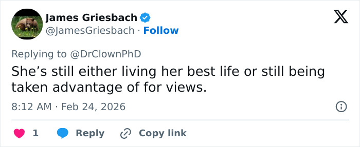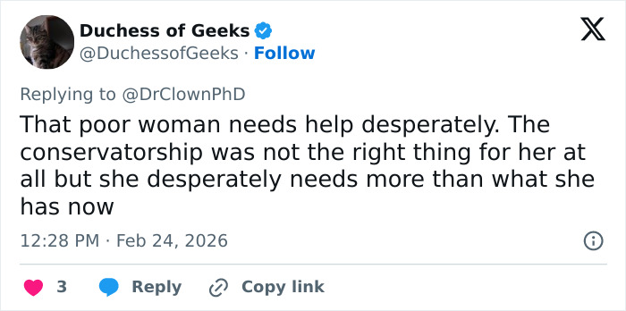 “Ela está tendo dificuldades para se adaptar a uma vida normal?” disse um usuário, mostrando preocupação com X em seu vídeo.