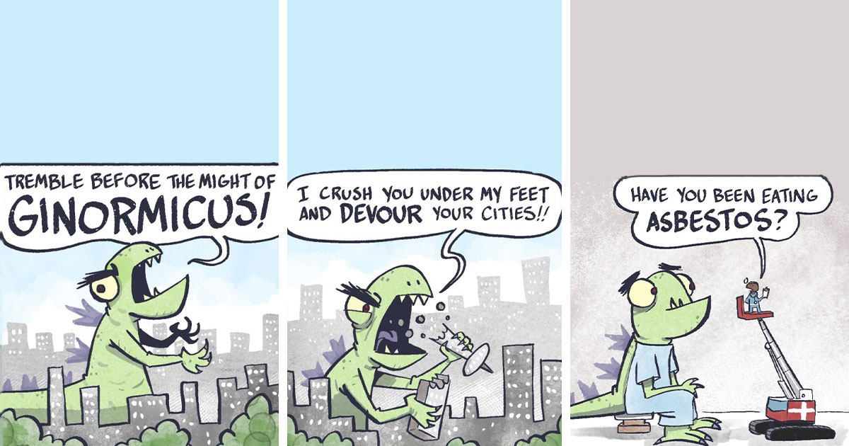 Se você viu nossos artigos anteriores sobre seu trabalho, reconhecerá a fórmula de assinatura: imagens misteriosas, diálogos inexpressivos e aquela reviravolta rápida em que algo que parece horror de repente se torna bobo ou um reflexo de nossos problemas cotidianos. Lewis descreveu sua abordagem como inclinada a “coisas assustadoras sendo bobas”, e esse equilíbrio assustador-fofo é exatamente o que torna os quadrinhos tão viciantes.