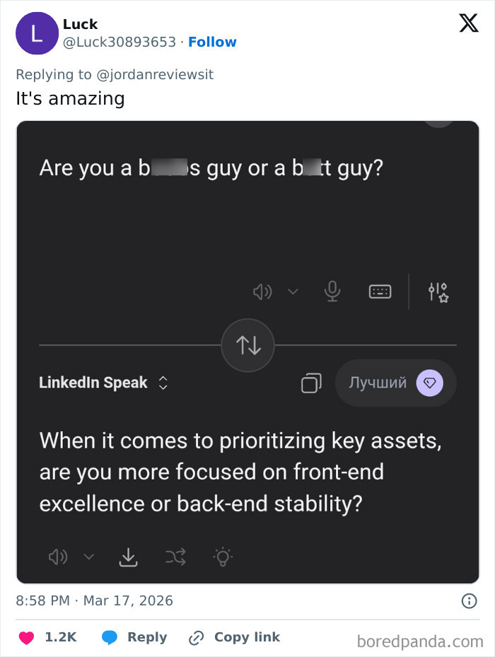 Recentemente, alguém criou uma ferramenta que funciona exatamente como o Google Translate, mas pode converter frases simples como “Odeio meu trabalho” ou “Acabei de ser demitido” em “Fala do LinkedIn”. As pessoas online rapidamente se apaixonaram por ele e comecei a compartilhar as sugestões mais ridículas que eles poderiam imaginar. Panda entediado reunimos aqui os mais engraçados para você aproveitar!