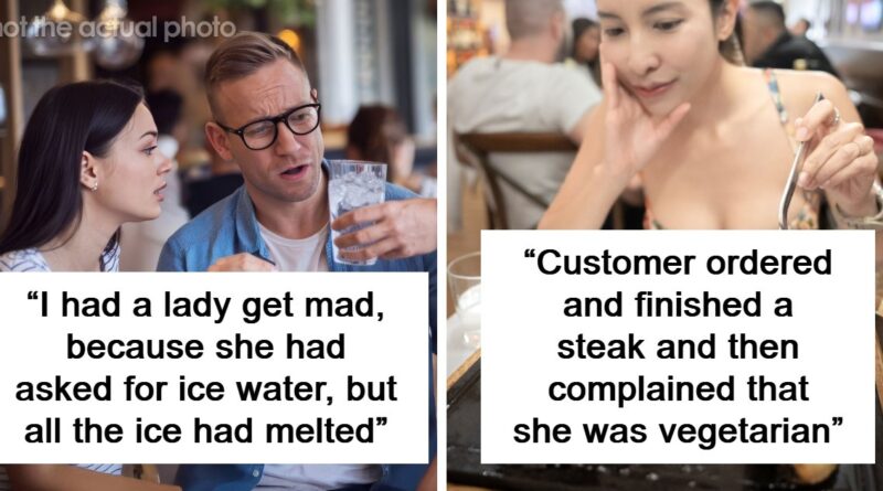 I was a server and had a lady get mad because she had asked for ice water but after sitting at the table for 45 minutes decided the water was “too watered down” cause all the ice had melted.